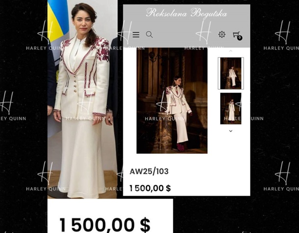 - Глава Національного агентства України з питань виявлення, розшуку та управління активами Олена Дума одягнула костюм від Роксолани Богутської. Його вартість – 1500 доларів.